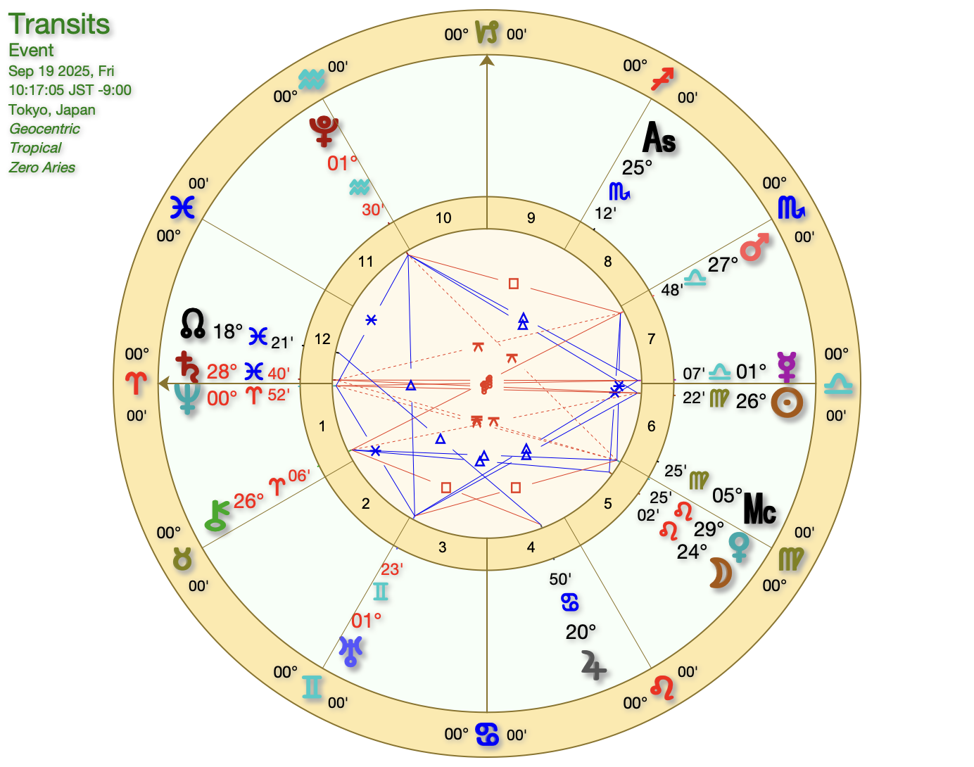 太陽、木星、ドラゴンヘッドという調停の形。何かとつながっていく感じですね。よく言われている、点と点がつながって線になるみたいな。