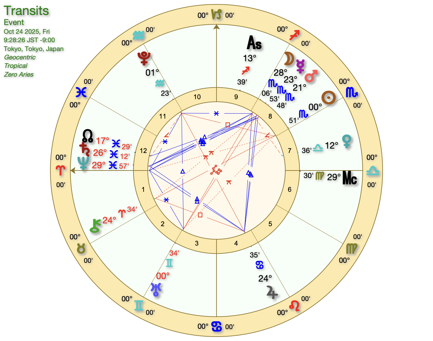 木星、冥王星とのTスクエアになるのでちょっと重い感じになる可能性もあるけど、まあ新月なのでこれからのテーマって感じでしょうかね。